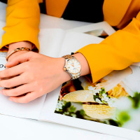 Корпус: Корпус из нержавеющей полированной/матовой стали, безель с PVD - покрытием розового цвета. Металлик циферблат украшен тримя бриллиантами. Стрелки и риски золотистого цвета. Сапфировое стекло с антибликовым покрытием. Диаметр 34 мм. Водостойкость 100 м. Система DS.