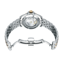 Ремешок: Нержавеющая сталь с частичным PVD покрытием. Браслетная застежка, раскладывающаяся при нажатии на кнопки.