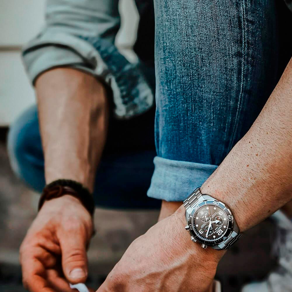 Ремешок: Нержавеющая сталь марки 316L с дайверским удлинением.