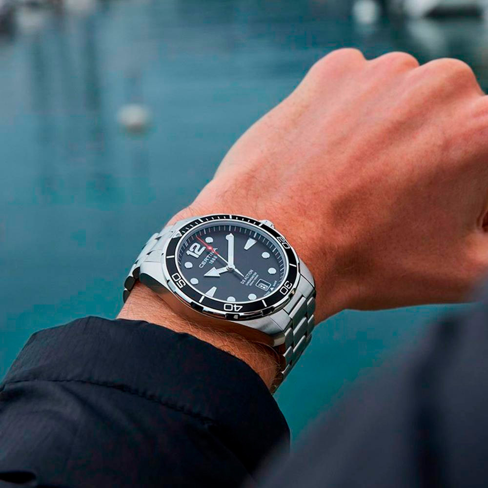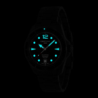 Корпус: Корпус из нержавеющей стали. Вращающийся безель. Покрытие Superluminova. Сапфировое стекло с антибликовым покрытием. Черный циферблат. Диаметр 43 мм. Водонепроницаемость 300 метров.