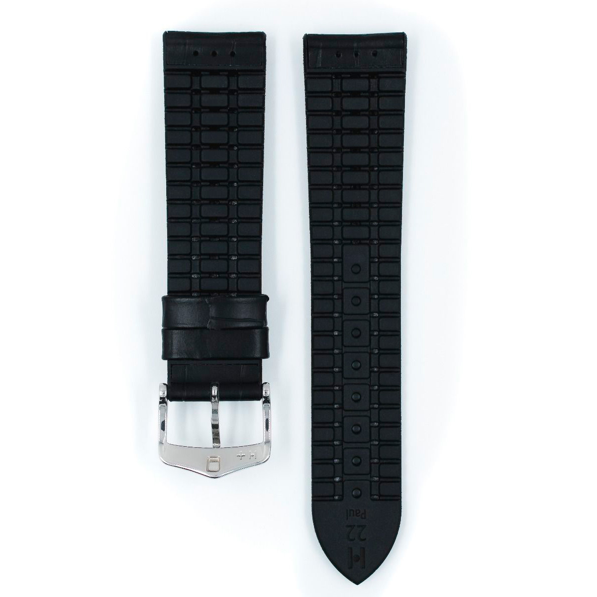 Описание: Лучшая итальянская телячья кожа Toscana с естественно выглядящим тиснением под аллигатора, полуматовая с характерным двухтоновым эффектом. Сердцевина HIRSCH Premium Caoutchouc (черный каучук). Благодаря специальной рифленой подкладке обеспечивается постоянная циркуляция воздуха и незамедлительное отведение воды и пота, создавая так называемый "эффект сухой кожи". Подчеркнутая запатентованная прошивка. Интегрированный фиксатор ремешка. Цвет - чёрный. WR-300.