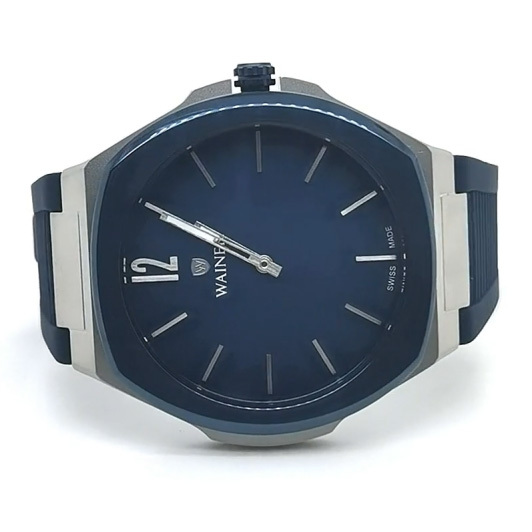 Корпус: Круглый корпус выполнен из нержавеющей стали. Циферблат синего цвета с метками в виде штрихов, надежно защищен минеральным стеклом. Заводная головка с защитой. Диаметр корпуса 44 мм. Водонепроницаемость 50 метров.