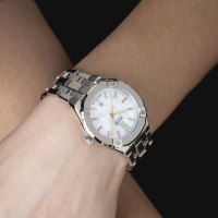 Корпус: Корпус изготовлен из нержавеющей стали 316L, устойчивой к коррозии, отличающейся высокой прочностью и устойчивостью к царапинам. Перламутрово-белыЙ циферблат с розовыми индексами обеспечивает идеальную читаемость. Сапфировое стекло с антибликовым покрытием, обладает повышенной устойчивостью к возникновению царапин. Диаметр корпуса 35,5 мм, толщина 9,05 мм. Водостойкость 100 метров.