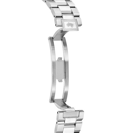 Ремешок: Нержавеющая сталь, поверхности с матовой шлифовкой - сатинированием и полировкой до зеркального блеска. Раскладывающаяся застежка с двойной кнопочной застежкой, гравировка с названием марки и ее эмблема.