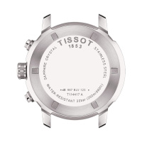 Функции: Центральные часовая и минутная стрелки, секундная стрелка вынесена на отдельный циферблат. Часы-хронограф с секундомером и тахиметром. В механизме 4 камня. Функция индикации заряда (EOL). Окошко даты находится между часовыми отметками 4 и 5.