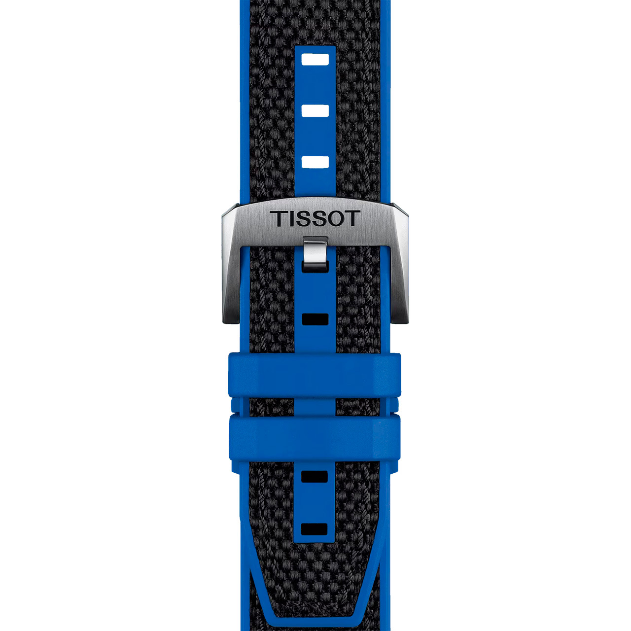Ремешок: Черно-синий тканевый ремешок из полимерного материалла с классической пряжкой.