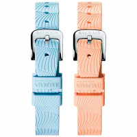 Ремешок: Нержавеющая полированная сталь. В комплекте два сменных каучуковых ремешка - кораллового и голубого цветов.
