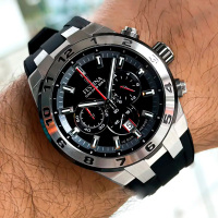 Функции: Индикация часов, минут при помощи центральных стрелок. Хронограф. Дата.