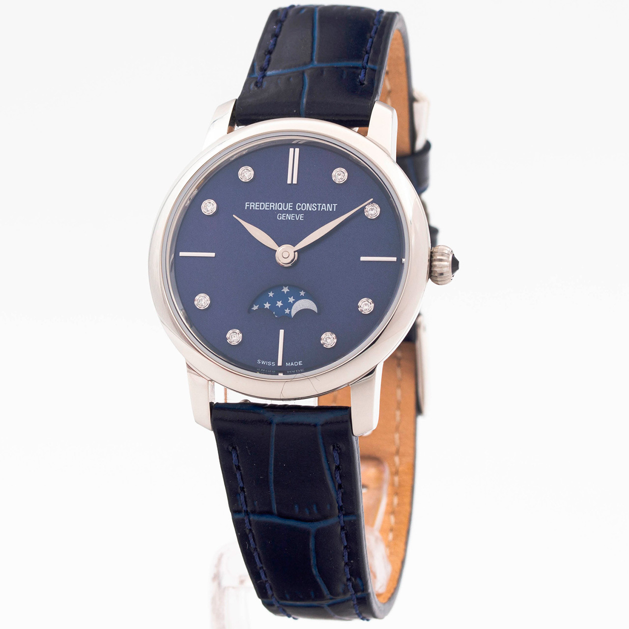 Корпус: Корпус выполнен из высококачественной стали с повышенной устойчивостью к коррозии, поверхности с полировкой до зеркального блеска. Синий перламутровый циферблат. Часовые метки украшены бриллиантами. Стрелки часов и индексы изготовленны из полированной стали. Сапфировое стекло. Диаметр 30 мм. Водостойкость 30 м.