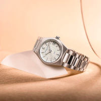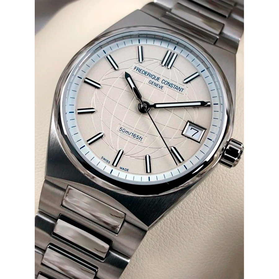 Ремешок: Браслет с литыми звеньями из нержавеющей стали, пружинная система быстрой замены ремешка/браслета, браслетная застежка тройного сложения “бабочка” раскладывается при нажатии на кнопки двойной фиксации. Сменный ремешок белого цвета из натурального каучука с тиснением, классическая застежка пряжка.
