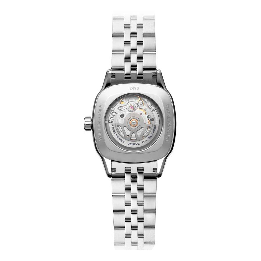 Ремешок: Браслет из высококачественной стали с 5 рядами литых звеньев. Браслетная застежка, раскладывающаяся при нажатии на кнопки с двойной системой блокировки, украшена гравировкой Raymond Weil.