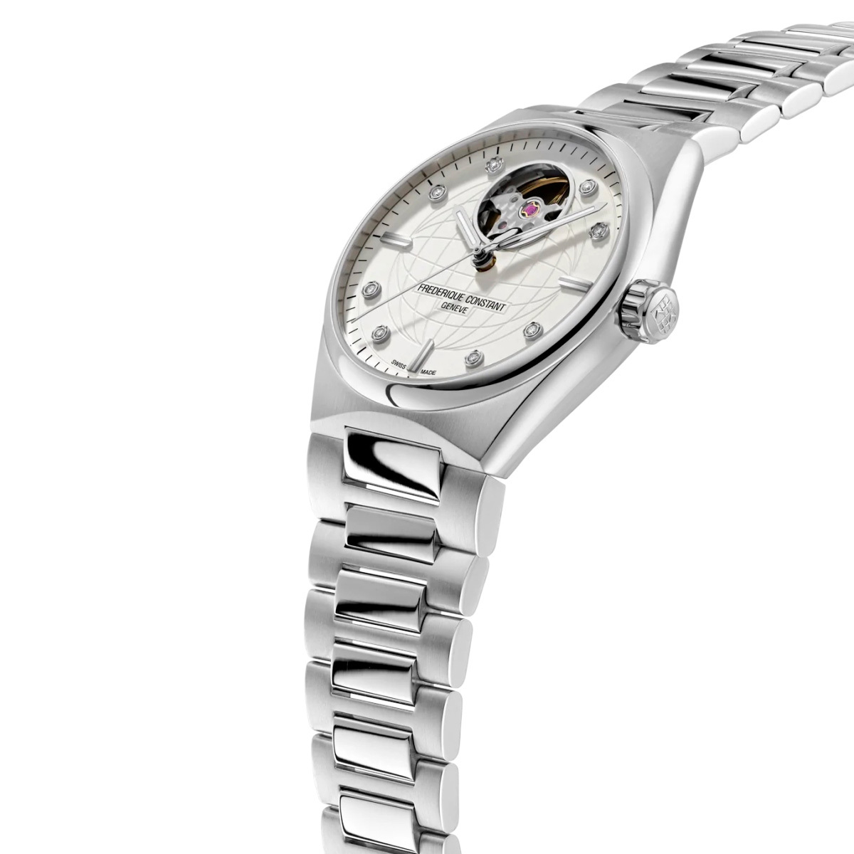 Механизм: Швейцарский механизм FC-303 с автоматическим подзаводом имеет запас хода 38 часов, частота колебаний баланса 28 800 пк/час (4Hz), 26 рубинов в качестве камневых опор колесной системы и палет анкерного спуска.
