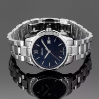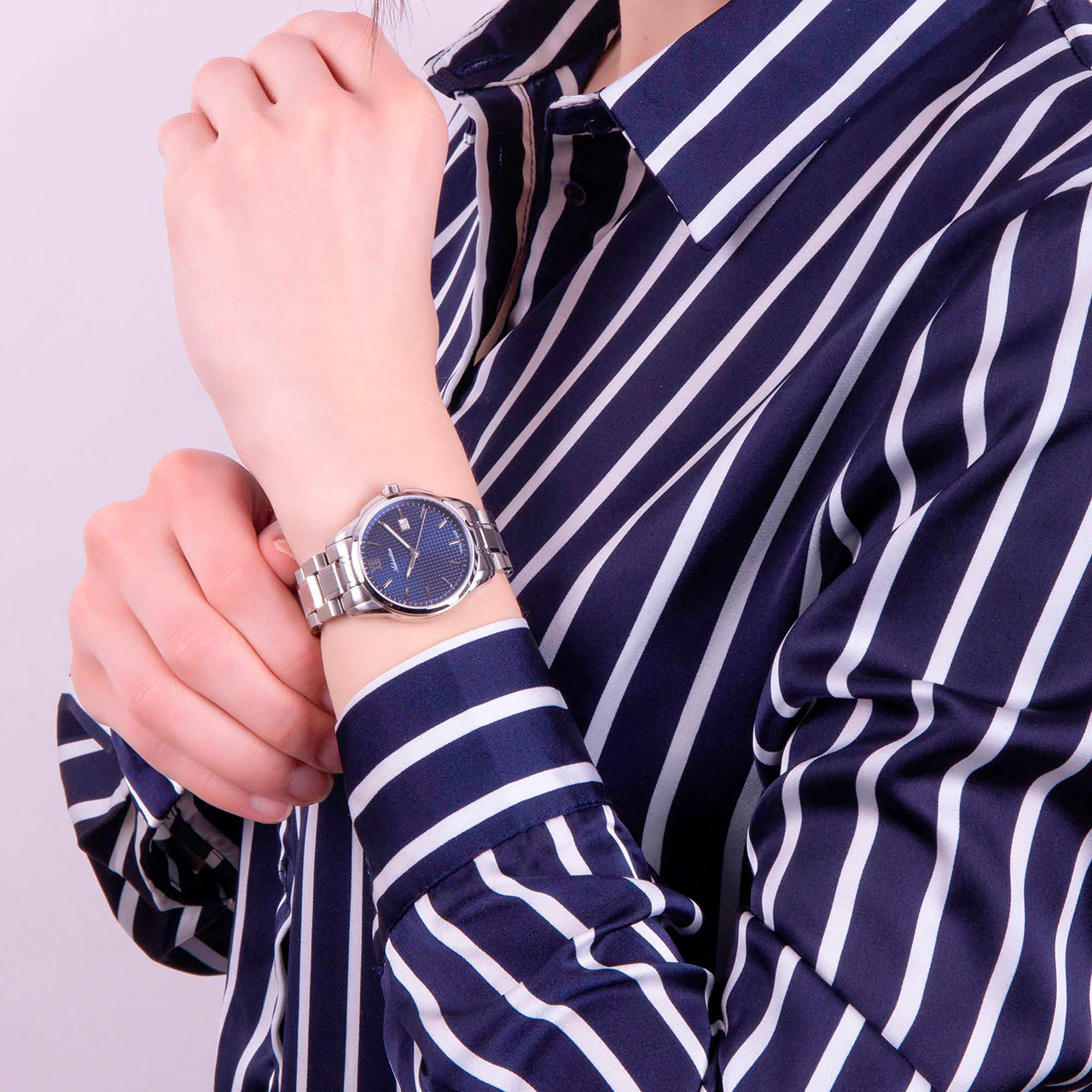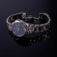 Корпус: Круглый корпус выполнен из полированной нержавеющей стали. Чёрный циферблат с узором гильоше. Накладные часовые индексы выполнены из стали. Стрелки с покрытием SuperLuminova, которое обеспечивает подсветку в темное время суток. Сапфировое стекло. Диаметр корпуса составляет 32 мм, толщина 8 мм. Водостойкость WR 50 (мытье рук, дождь).