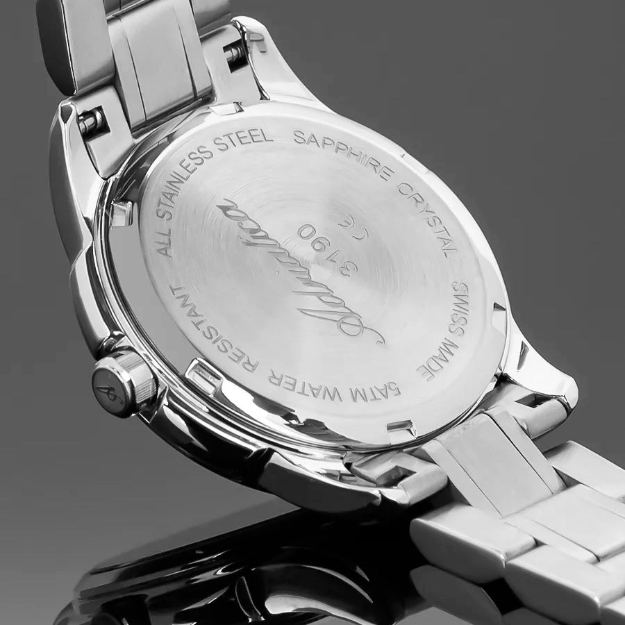 Функции: Центральные часовая, минутная и секундная стрелки. Апертура даты в позиции 3 часов.