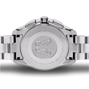 Корпус: Нержавеющая сталь, безель из высокотехнологичной керамики, сапфировое стекло с антибликовым покрытием. Циферблат темно-серого цвета. Водонепроницаемость 100 метров. Диаметр 44,9 мм.