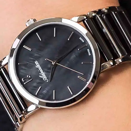 Ремешок: Браслет выполнен из нержавеющей стали с керамическими вставками чёрного цвета.