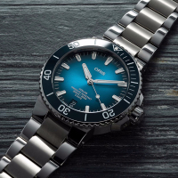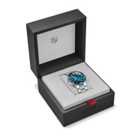 Корпус: Многокомпонентный корпус из нержавеющей стали. Керамический безель с минутной шкалой вращается в одном направлении. Циферблат выполнен по технологии Sunray (солнечные лучи) синего цвета. Сапфировое стекло, выпуклое с обеих сторон, внутреннее антибликовое покрытие. Индексы и стрелки покрыты составом Superluminova BG W9. Завинчивающаяся задняя крышка со специальной гравировкой. Завинчивающаяся заводная головка из нержавеющей стали. Диаметр: 43,5 мм. Водонепроницаемость: 300 метров.