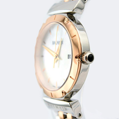 Корпус: Корпус из нержавеющей стали 316L с частичным PVD - покрытием. Перламутровый циферблат с полированными позолоченными стрелками и часовыми индексами. Сапфировое стекло с антибликовым покрытием. Заводная головка украшена камнем в форме кабошона. Диаметр: 29 мм. Водостойкость: 50 м.