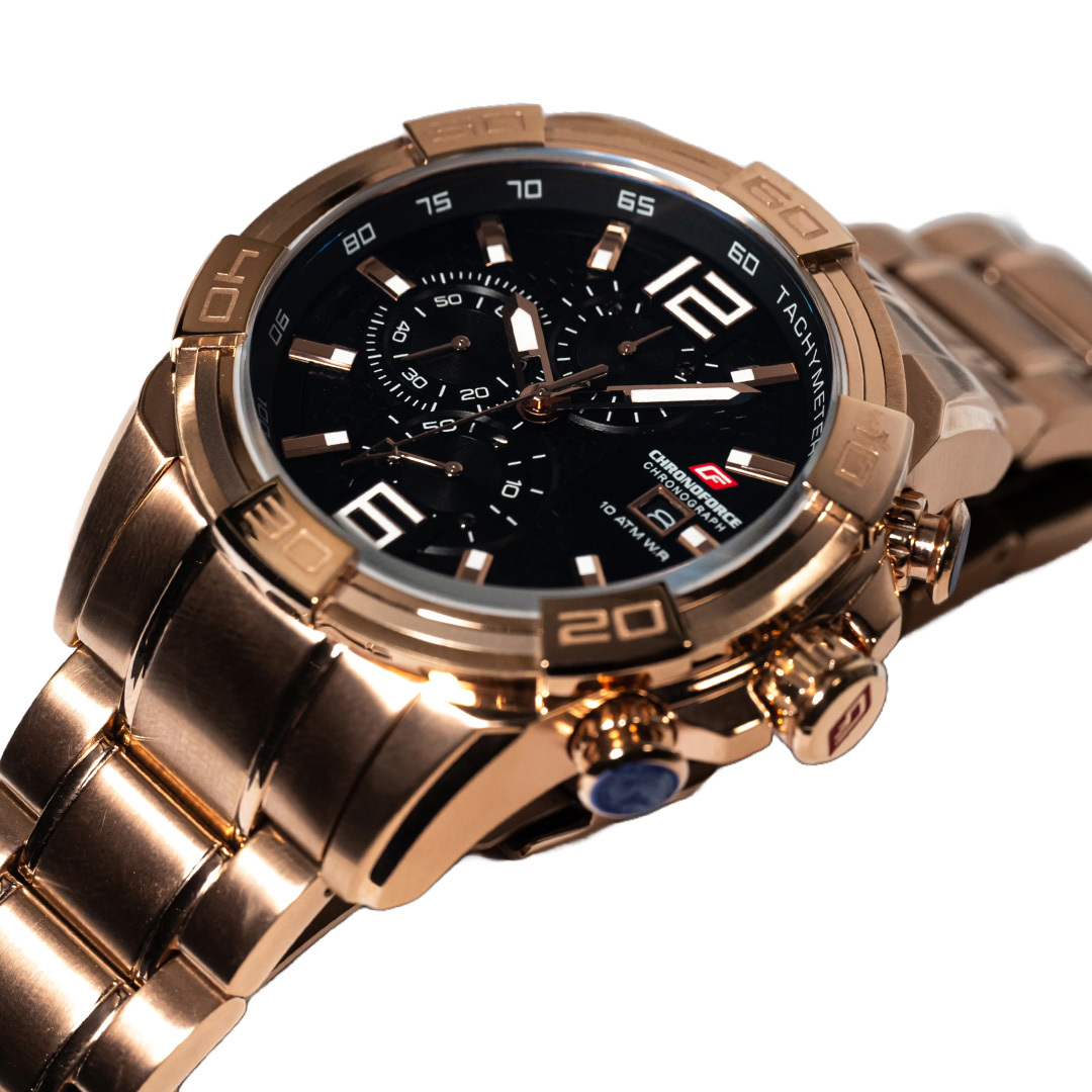 Ремешок: Браслет выполнен из нержавеющей стали с IP(ионное) покрытием. Браслетная раскладывающаяся застежка с гравировкой логотипа. Каждые часы бренда Chronoforce имеют уникальную упаковку, в виде мотоциклетного шлема.