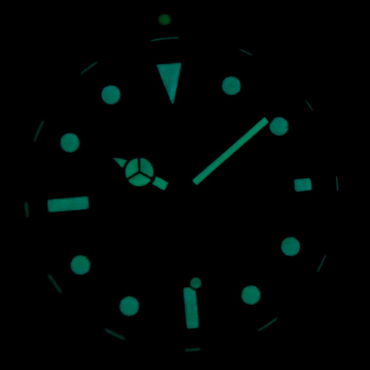 Корпус: Корпус выполнен из высококачественной стали с повышенной устойчивостью к коррозии. Однонаправленный безель вращается со щелчками только в направлении против хода стрелок, боковая грань с ребристой насечкой, фронтальная поверхность с PVD - покрытием и контрастной разметкой, на отметке “12 часов” находится капсула со светящимся в темноте фотолюминесцентным элементом. Синий матовый циферблат. Индексы и стрелки с покрытием Super-LumiNova®. Сапфировое стекло с антибликовым покрытием. Диаметр: 42 мм. Водонепроницаемость: 300 метров, завинчивающаяся заводная коронка.