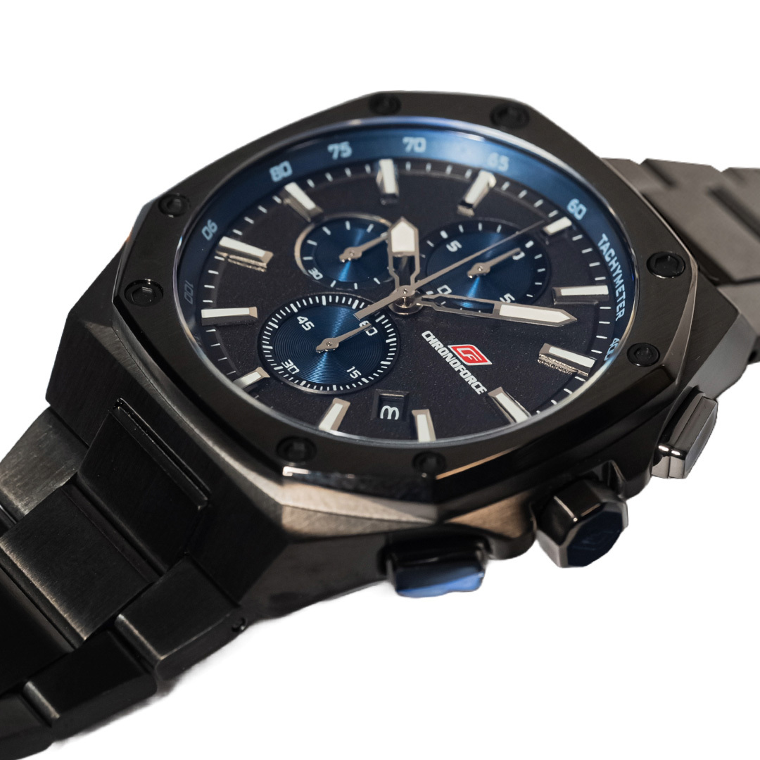 Ремешок: Браслет изготовлен из высококачественной нержавеющей стали с IP покрытием серого цвета. Каждые часы бренда Chronoforce имеют уникальную упаковку, в виде мотоциклетного шлема.