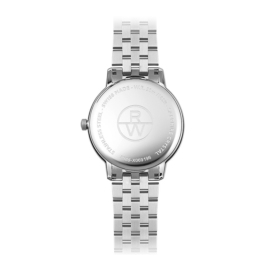 Ремешок: Модель на браслете из высококачественной стали с 5 рядами литых звеньев. Браслетная застежка, раскладывающаяся при нажатии на кнопки с двойной системой блокировки, украшена гравировкой Raymond Weil.