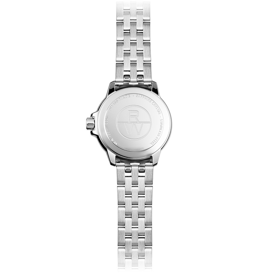 Ремешок: Браслет из высококачественной стали с 5 рядами литых звеньев. Браслетная застежка, раскладывающаяся при нажатии на кнопки с двойной системой блокировки, украшена гравировкой Raymond Weil.