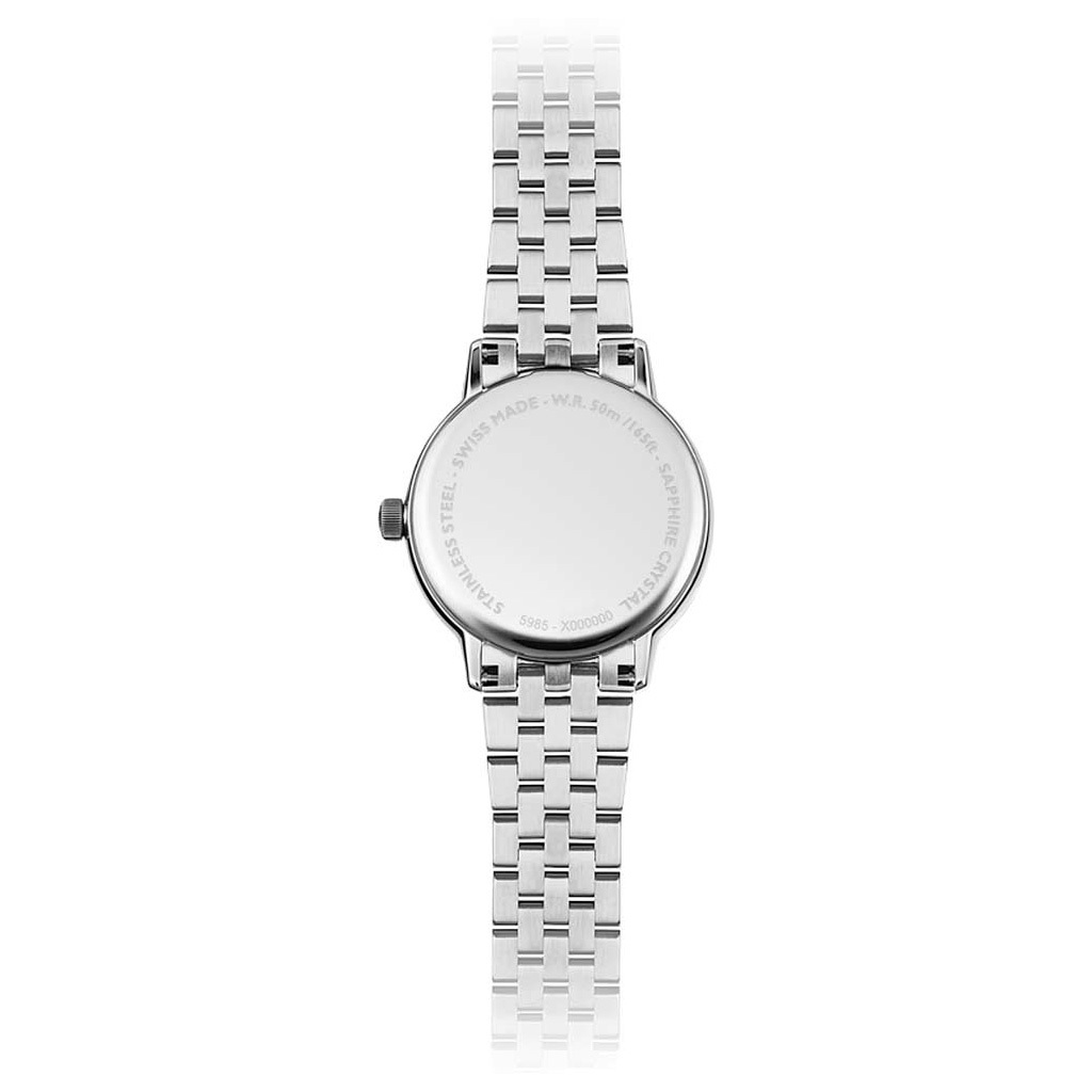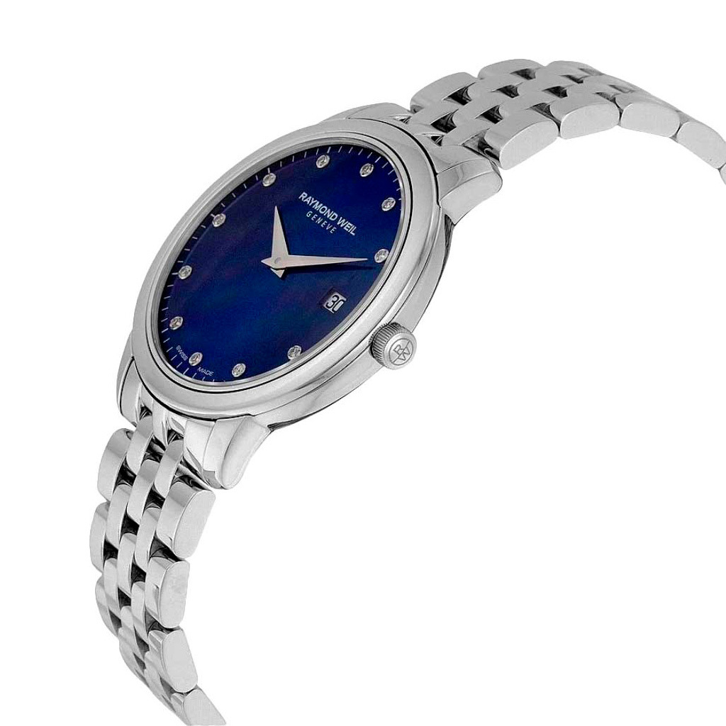 Ремешок: Модель на браслете из высококачественной стали с 5 рядами литых звеньев. Браслетная застежка, раскладывающаяся при нажатии на кнопки с двойной системой блокировки, украшена гравировкой Raymond Weil.
