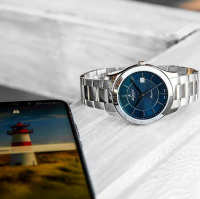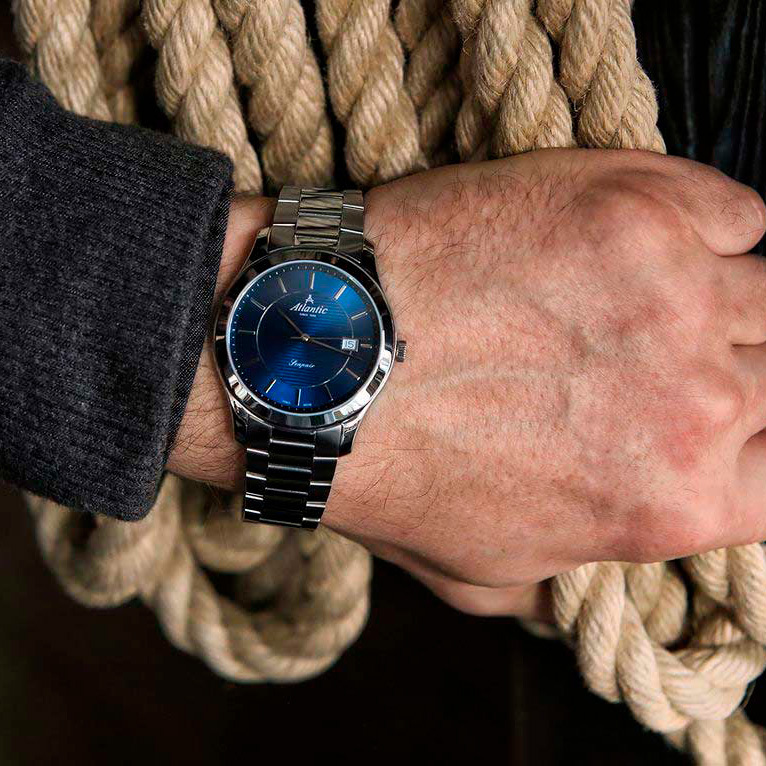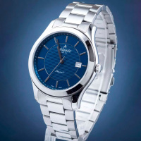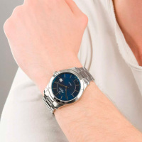 Корпус: Корпус выполнен из высококачественной стали с повышенной устойчивостью к коррозии. Синий циферблат в центральной части украшен гильошированным узором. Серебристые полированные стрелки и часовые индексы. Сапфировое стекло устойчивое к появлению царапин, обладающее высокой прозрачностью. Диаметр: 42 мм. Водозащита: 50 м.