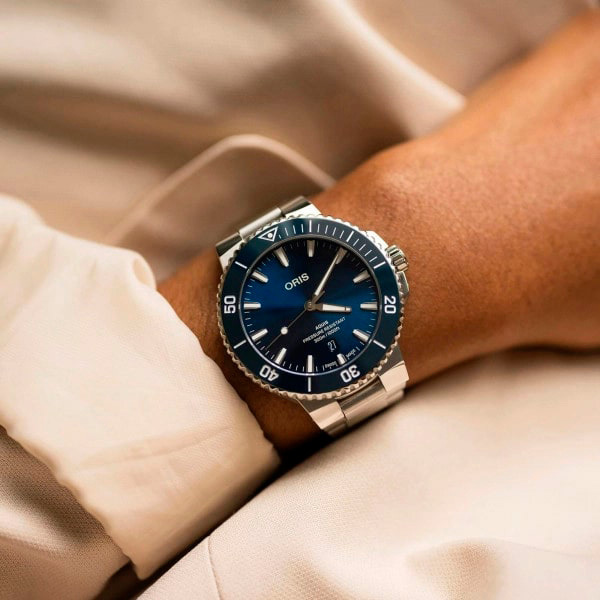 Корпус: Многокомпонентный корпус из нержавеющей стали, синий керамический ободок с минутной шкалой. Сапфировое стекло, выпуклое с обеих сторон, внутреннее антибликовое покрытие. Индексы и стрелки покрыты составом Superluminova. Синий циферблат. Завинчивающаяся прозрачная задняя крышка корпуса с минеральным стеклом. Завинчивающаяся заводная головка из нержавеющей стали. Диаметр 43,5 мм. Водонепроницаемость 300 метров.