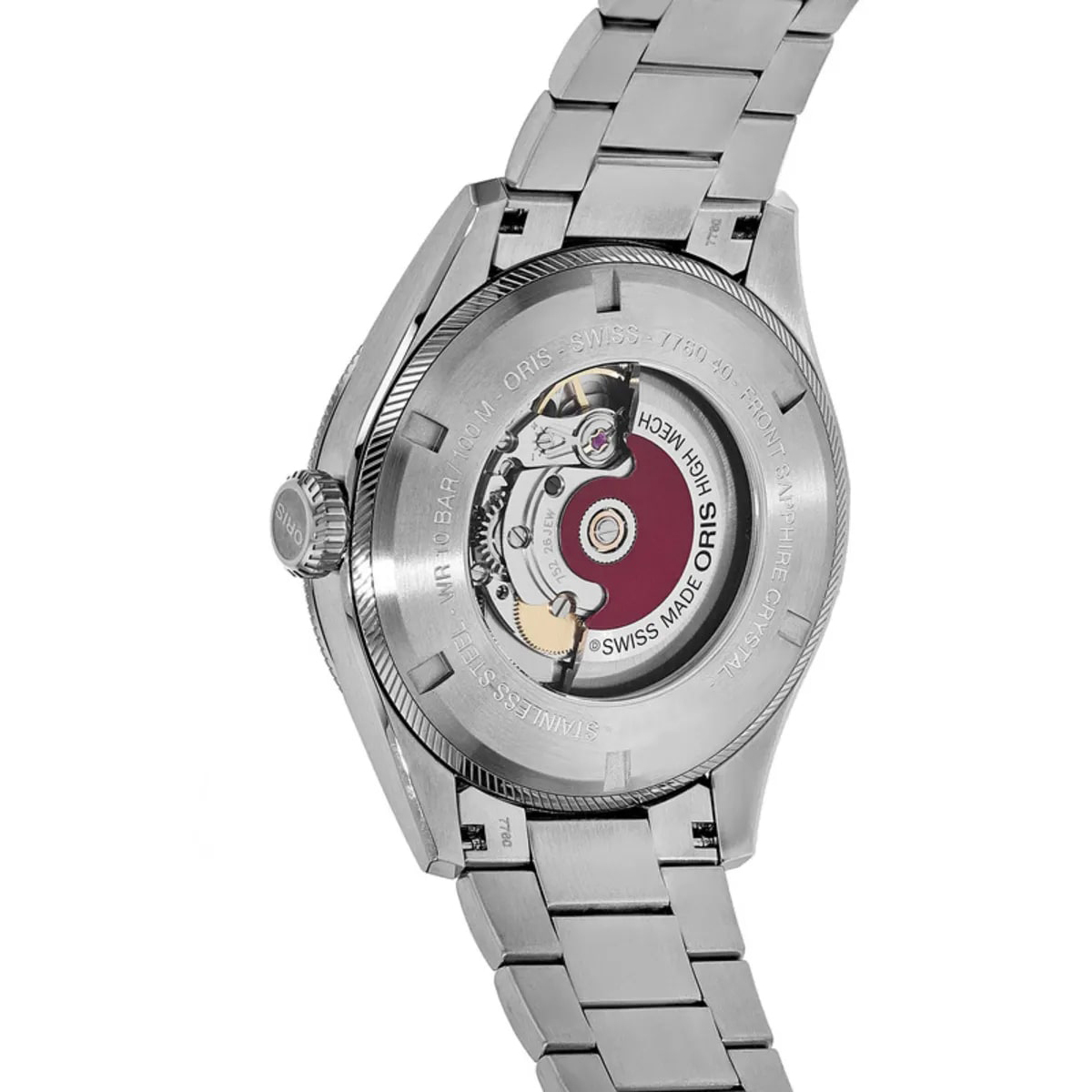 Корпус: Многокомпонентный корпус из нержавеющей стали. Синий циферблат. Цифры маркеров часовой шкалы и стрелки покрыты люминофором Superluminova BG W9 Grade. Выпуклое с обеих сторон сапфировое стекло с внутренним антибликовым покрытием. Завинчивающаяся прозрачная задняя крышка из минерального стекла. Завинчивающаяся заводная головка из нержавеющей стали. Диаметр: 44 мм. Водонепроницаемисть: 10 бар.