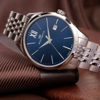 Корпус: Корпус выполнен из высококачественной стали с повышенной устойчивостью к коррозии, поверхности с матовой шлифовкой – сатинированием и полировкой до зеркального блеска с частичным PVD покрытием. Циферблат глубокого синего цвета с шлифовкой “солнечные лучи". Сапфировое стекло, это лучшее стекло для наручных часов, которое не царапается при механическом воздействии, его можно повредить только алмазом. Диаметр корпуса: 41 мм. Водозащита до 50 метров.