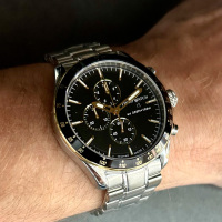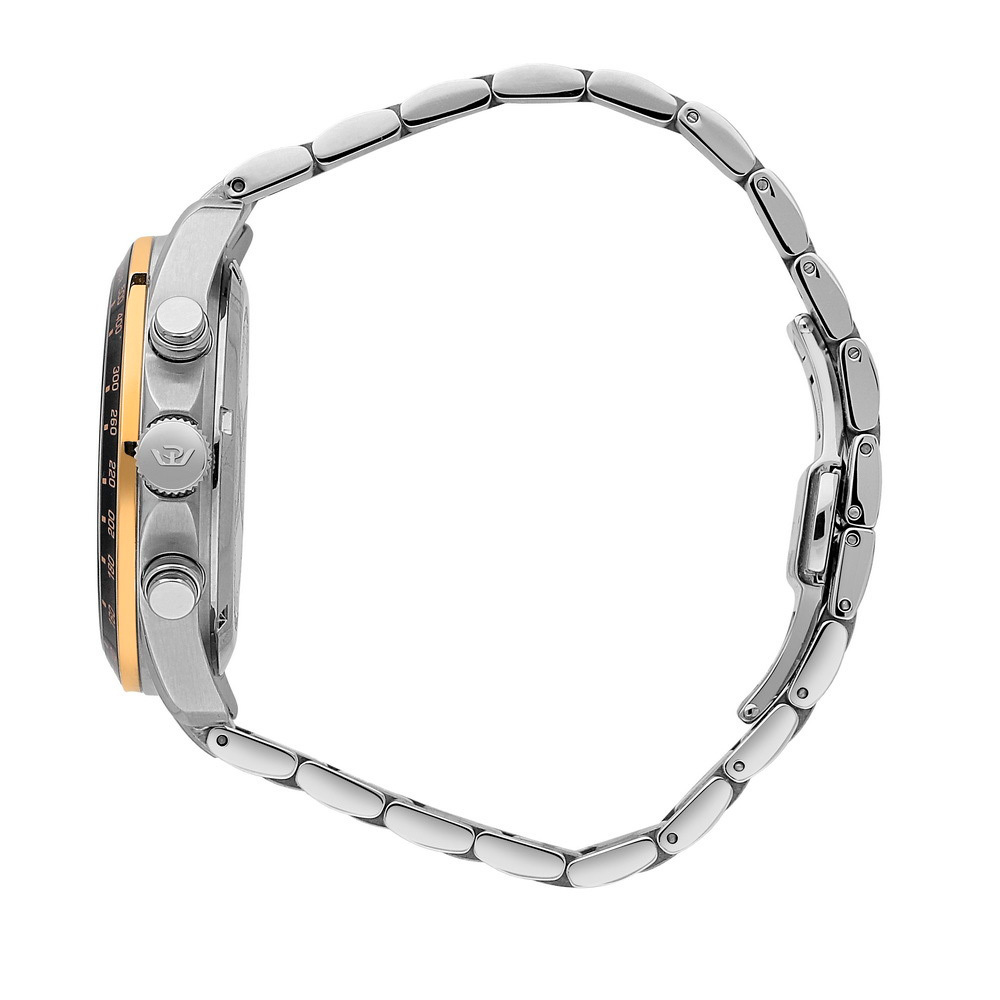 Корпус: Корпус выполнен из высококачественной стали с повышенной устойчивостью к коррозии, поверхности с матовой шлифовкой – сатинированием и полировкой до зеркального блеска с частичным PVD покрытием. Циферблат чёрного цвета. Накладные позолоченные часовые индексы и стрелки с люминесцентный составом. Сапфировое стекло, это лучшее стекло для наручных часов, которое не царапается при механическом воздействии, его можно повредить только алмазом. Диаметр корпуса: 44 мм. Водозащита до 100 метров.