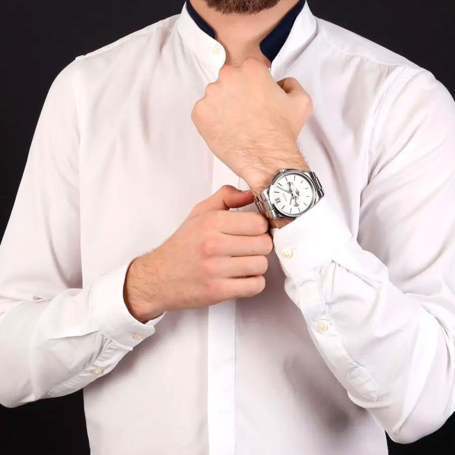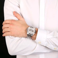 Ремешок: Браслет выполнен из высококачественной стали с повышенной устойчивостью к коррозии, поверхности с матовой шлифовкой – сатинированием и полировкой до зеркального блеска с раскладывающейся застежкой на фиксации.