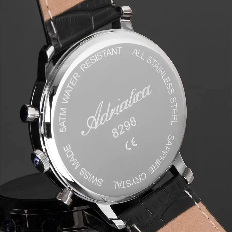 Ремешок: Кожаный ремешок чёрного цвета с классической застежкой.