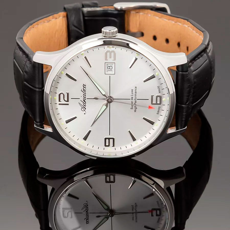 Корпус: Круглый корпус выполнен из полированной нержавеющей стали. Светлый циферблат. Накладные часовые индексы выполнены из стали. Стрелки с покрытием SuperLuminova, которое обеспечивает подсветку в темное время суток. Минеральное стекло. Диаметр корпуса составляет 42 мм, толщина 10 мм. Водостойкость WR 50 (мытье рук, дождь).