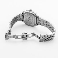 Корпус: Корпус изготовлен из высококачественной нержавеющей стали, марки 316L. Черный перламутровый/матовый циферблат. Накладные часовые индексы и стрелки выполнены из полированной стали с люминесцентным покрытием Super-Luminova, которое светится в темноте после непродолжительной зарядки на свету. Сапфировое стекло с антибликовым покрытием защищает циферблат от царапин и обеспечивает отличную читаемость при любом освещении. Рифлёная заводная головка. Размер корпуса: 32 x 32 мм. Водонепроницаемость: 50 метров.