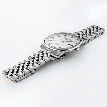 Ремешок: Браслет из высококачественной нержавеющей стали с повышенной устойчивостью к коррозии, поверхности с матовой шлифовкой – сатинированием и полировкой до зеркального блеска. Раскладывающаяся стальная застежка "бабочка" .