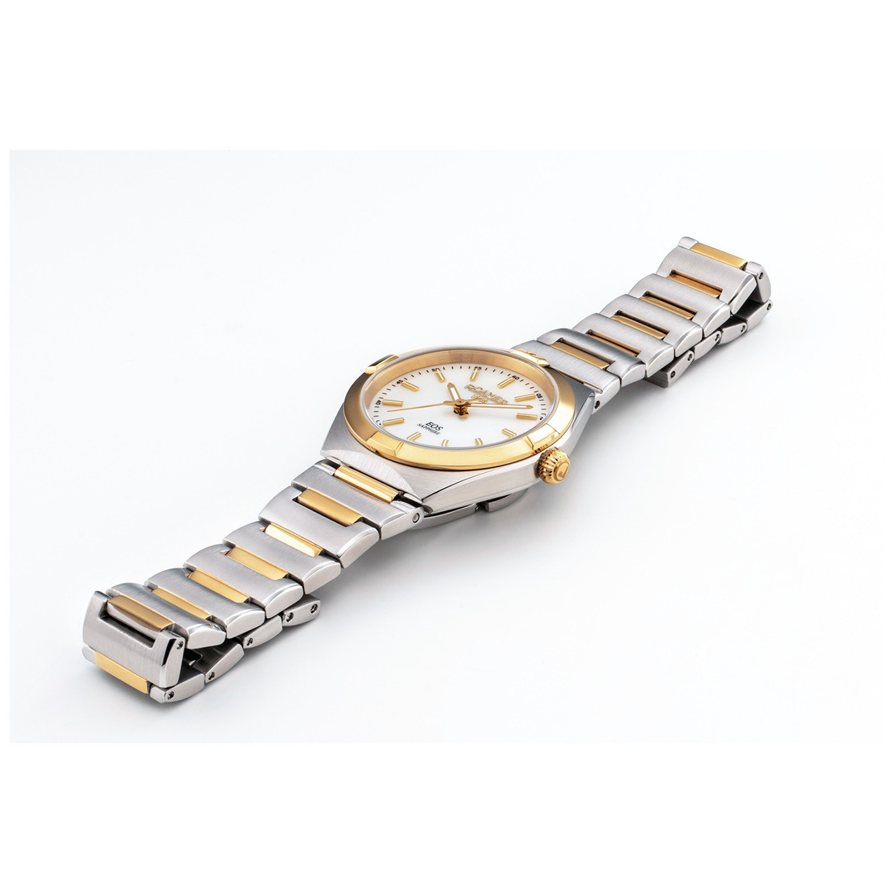 Корпус: Корпус выполнен из высококачественной нержавеющей стали 316L с полировкой и матовой шлифовкой - сатинированием, с частичным покрытием жёлтого золота. Перламутровый циферблат, позолоченные стрелки и часовые индексы в виде штрихов с люминесцентным покрытием Super-LumiNova для оптимальной разборчивости в условиях низкой освещенности. Сапфировое стекло с антибликовым покрытием. Рифленая заводная головка. Диаметр: 34 мм. Водонепроницаемость: 50 м.
