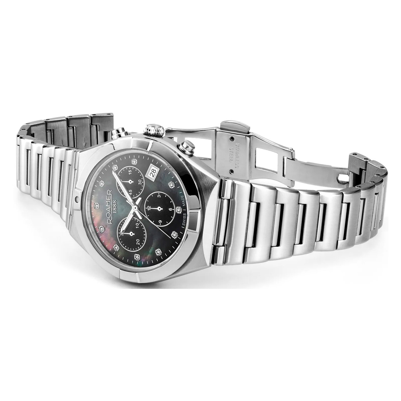 Корпус: Корпус выполнен из высококачественной нержавеющей стали 316L с полировкой и матовой шлифовкой - сатинированием. Перламутровый циферблат чёрного цвета, серебристые стрелки с люминесцентным покрытием для оптимальной разборчивости в условиях низкой освещенности. Инкрустация 12 цирконов в качестве часовых индексов. Сапфировое стекло с антибликовым покрытием. Диаметр: 38 мм. Водозащита: 100 м.