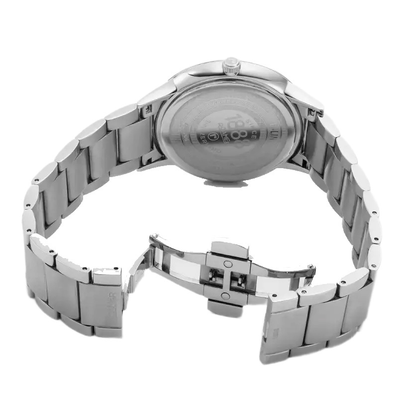 Ремешок: Браслет из нержавеющей стали с литыми звеньями, браслетная застежка с тройным сложением – «бабочка». В комплект часов входит дополнительный кожаный ремешок, который вы можете заменить с помощью удобной кнопки, без необходимости использования инструмента. Часы поставляются в специальной подарочной упаковке.