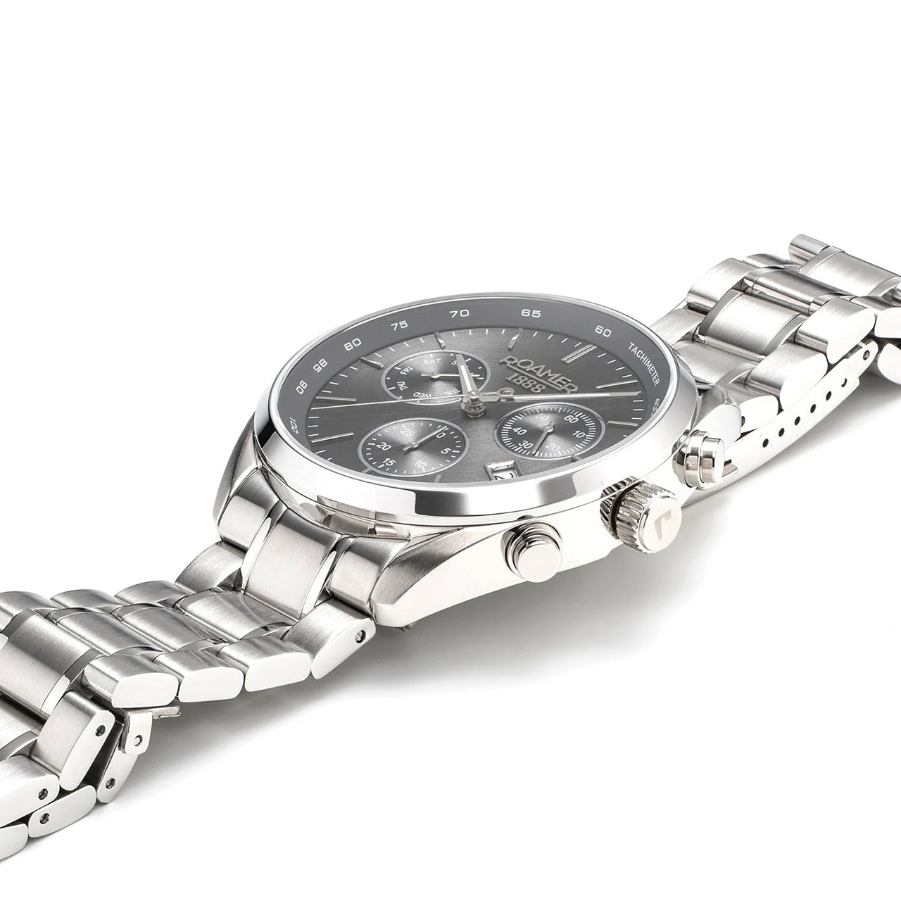 Функции: Индикация часов и минут при помощи центральных стрелок. Указатель даты в позиции "4 часа", дня недели в позиции "9-10 часов". Тахиметр. Хронограф.