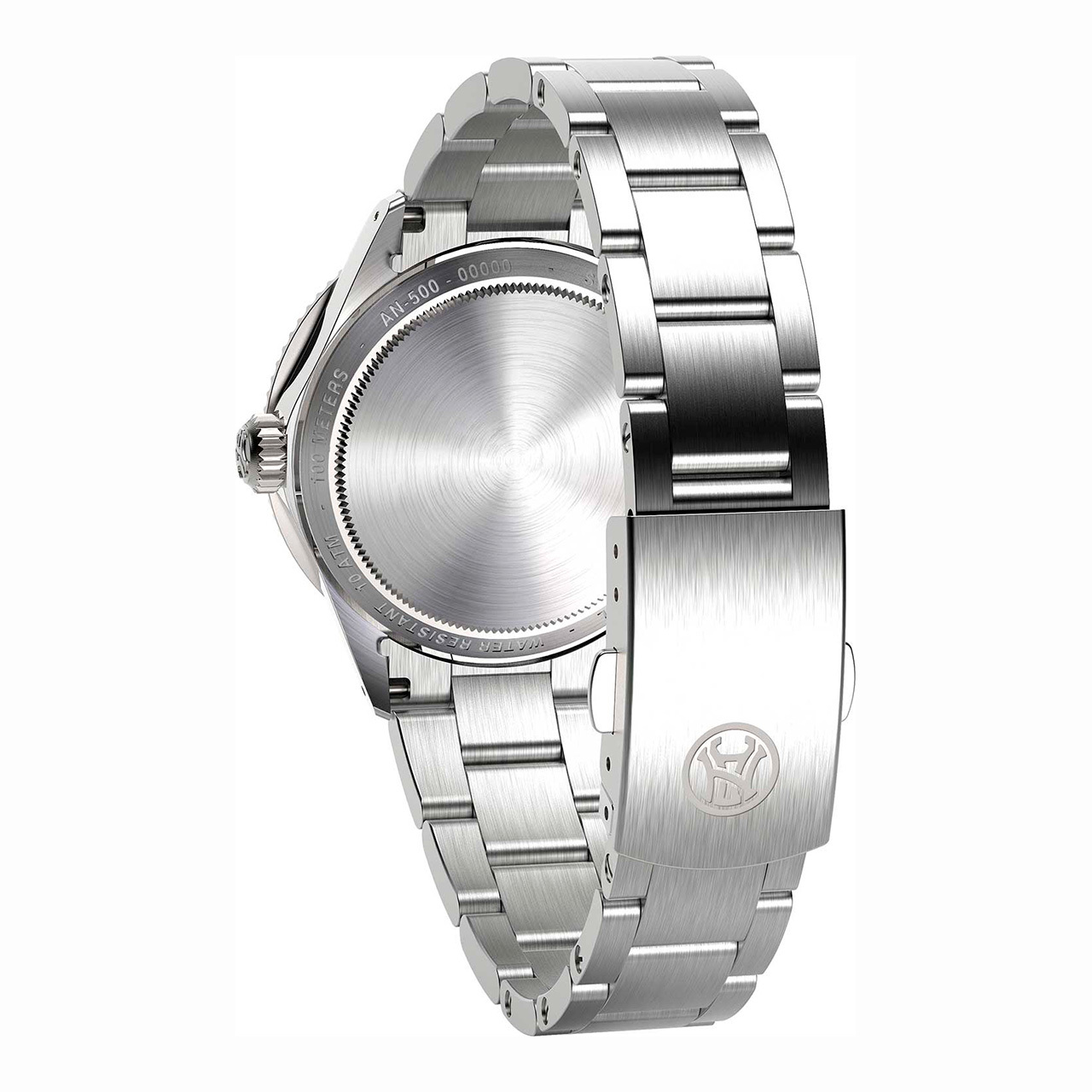 Корпус: Корпус из нержавеющей полированной/матовой стали. Чёрный градиентный циферблат со светящимися индексами и стрелками. Сапфировое стекло. Диаметр 38 мм. Водозащита 100 м, завинчивающаяся заводная головка.