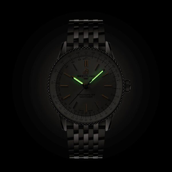 Ремешок: Браслет Navitimer с литыми звеньями в 7 рядов выполнен из нержавеющей стали, ширина 18/16 мм. Раскладывающаяся браслетная застежка с дополнительным защитным фиксатором украшена гравировкой и рельефной эмблемой марки.