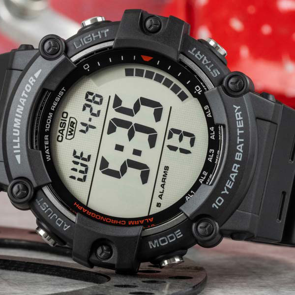 Корпус: Полимерный корпус чёрного цвета надежно защищает часы от механических повреждений. Акриловое стекло. Габаритные размеры: 51,21x54,4мм, толщина 15,73мм, вес 57г. Водозащита: 100м.