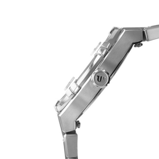 Корпус: Круглый корпус выполнен из нержавеющей стали, поверхности с матовой шлифовкой сатинированием и глянцевой полировкой. Перламутровый циферблатматовый белого цвета. Аппликация часовых индексов и стрелки с алмазной огранкой имеют родиевое покрытие и полировку до зеркального блеска. Часовые индексы украшены бриллиантами. Фотолюминесцентный состав SLN на стрелках, светящийся в темноте. Сапфировое стекло с антибликовым покрытием. Диаметр корпуса составляет 35 мм. Водостойкость 10 ATM.