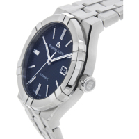 Корпус: Корпус и безель из матовой/полированной нержавеющей стали. Черный циферблат украшен гильоше, серебристые стрелки. Сапфировое стекло с антибликовым покрытием. Водонепроницаемость 200 метров, завинчивающаяся заводная коронка. Размер 42 мм.
