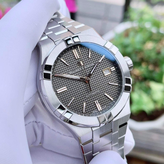 Корпус: Корпус и безель из матовой/полированной нержавеющей стали. Серый циферблат украшен гильоше, золотистые стрелки. Сапфировое стекло с антибликовым покрытием. Водонепроницаемость 200 метров, завинчивающаяся заводная коронка. Размер 42 мм.