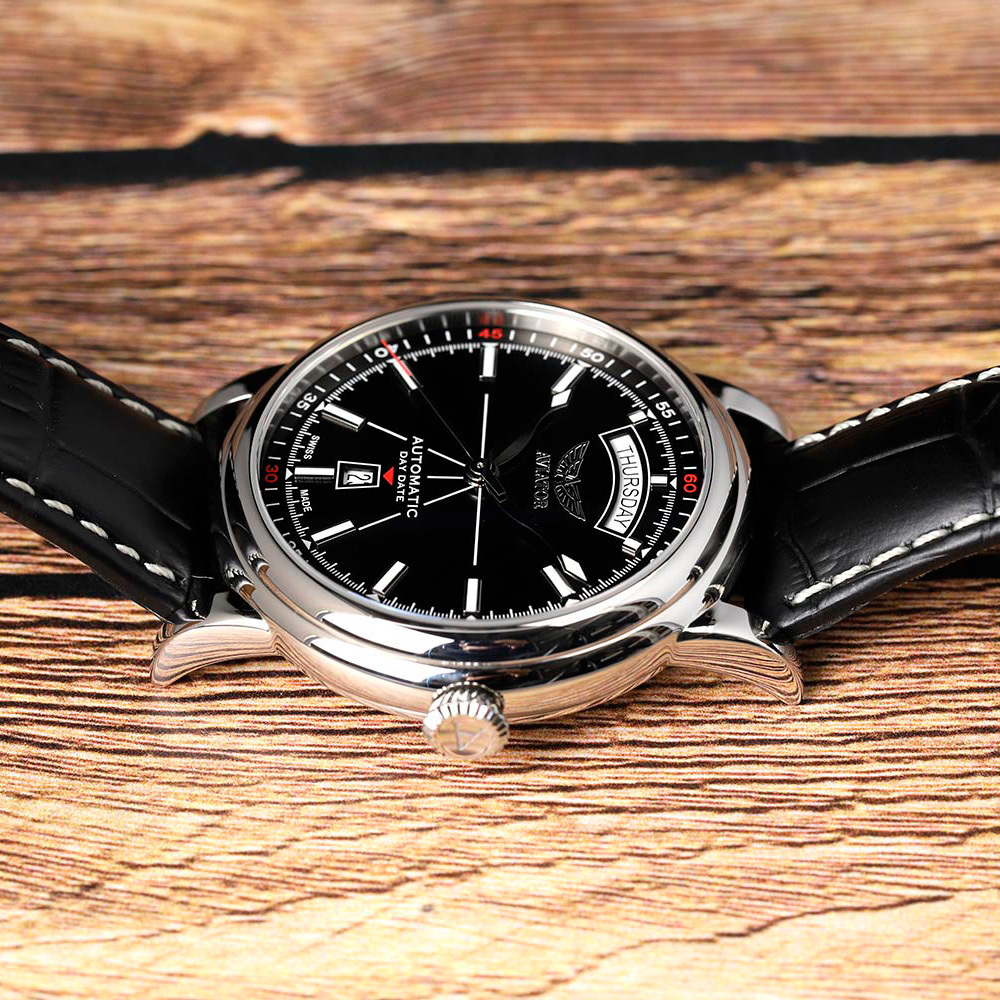 Корпус: Корпус из нержавеющей полированной/матовой стали. Чёрный циферблат с серебристыми стрелками. Люминесцентное покрытие индексов, стрелок. Сапфировое стекло с антибликовым покрытием. Диаметр 45 мм. Водостойкость 50 м.