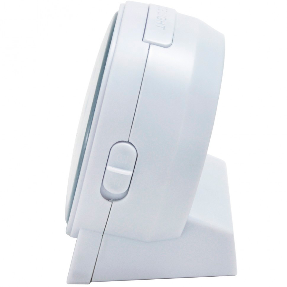 Функции: У будильника светомузыкальный звонок. Во время работы звонка включается подсветка, цвет которой меняется в такт со звучащей мелодией. Функция повтора сигнала (snooze) сработает примерно через 5 минут. Светодиодная подсветка голубого цвета включается кнопкой сверху корпуса и продолжает работать в течение 5 секунд после нажатия кнопки.